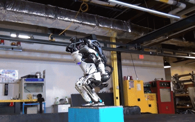 这一版最震撼的还有Atlas摔倒了可以自主爬起来的功能,这个功能相对于其他机器人来讲,性能已经十分优秀了,而且起身的效率也十分迅速,顽强抵抗人类工程师的各种“欺负”。之后,2017年11月爆出了碉堡的连续弹跳后空翻技术,创下了一个机器人领域里程碑的事件。