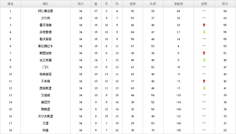 欧冠资格:拜仁慕尼黑、沙尔克、霍芬海姆、多特蒙德(全部进入正赛)