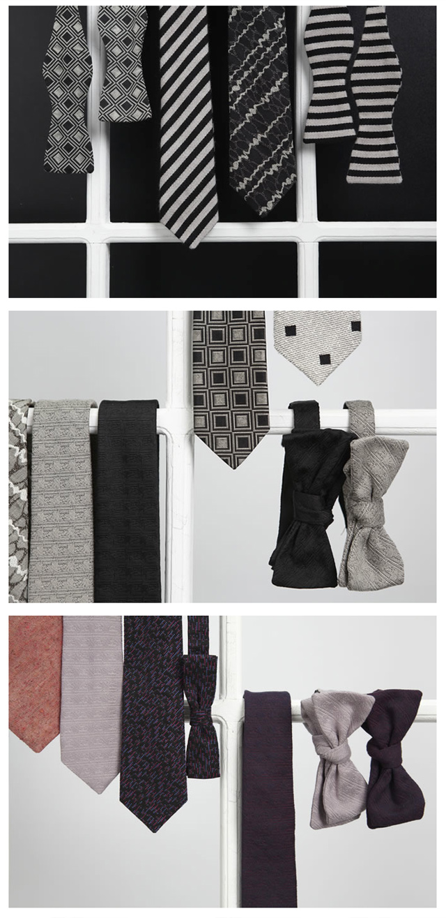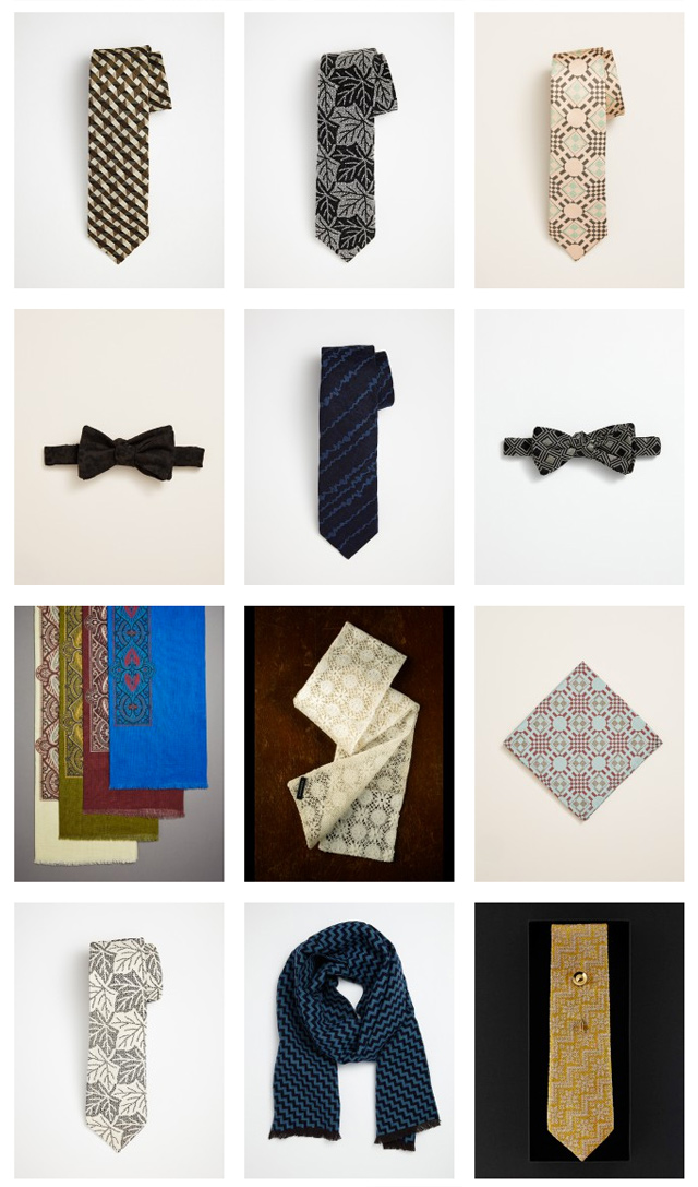 受到爱德华大厅地砖和皇家橡树叶的传统几何形状与英式图案的启发,除蕾丝以外,Marwood还会使用优质的丝绸和纱线制作面料。在今年的秋冬系列中,这款蕾丝橡树叶领结和真丝维也纳领带的设计,其灵感来自奥地利艺术家科罗曼·莫塞尔(Koloman Moser)。