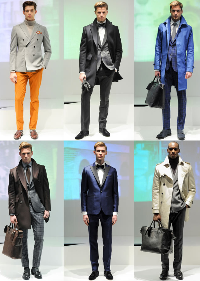 2014秋冬系列男装秀场的灵感来自于品牌的军服收藏,将品牌留有的军装剪裁运用在传统的男士服装中,并使用了卡其色、橄榄色、灰色、空军蓝和烟草色等多色衣料。