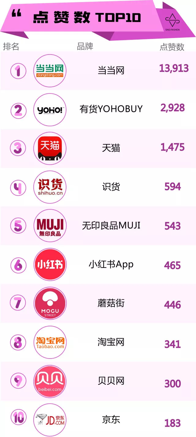 本期排名中,小红书和无印良品替换了位置,京东、天猫依然未露脸,但淘宝网代表阿里巴巴争了口气,亚马逊、网易考拉和苏宁易购被挤出前10,取而代之的是聚美优品和凡客。
