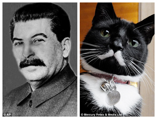 这只猫猫长有一撇八字须,因为貌似前苏联领导人斯大林,于是主人以斯大林的名字为小猫命名。