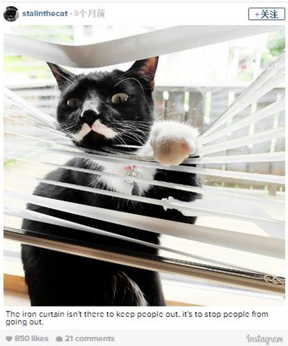 但是Anne Sofie解释道:“我们给猫取名为斯大林,并没有要侮辱谁的意思。我们并不是第一个用独裁者的名字命名猫的人,也没有恶意去取笑斯大林。我们只是想让我们的傻猫给Instagram和Facebook上的网友带去一些快乐。 ”