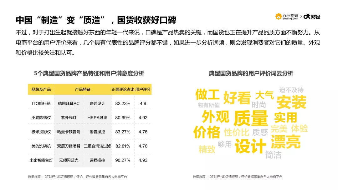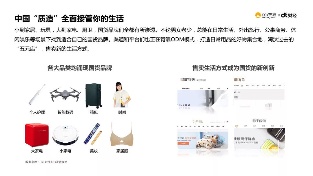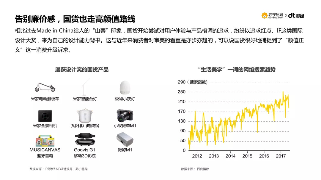 2018年5月10日,DT财经联合苏宁易购发布《国货品质,质造生活——苏宁2018国货幸福感报告》,尝试探寻在这个消费升级的时代,国货品牌们究竟给你带去了怎样的幸福感,又是如何实现的。