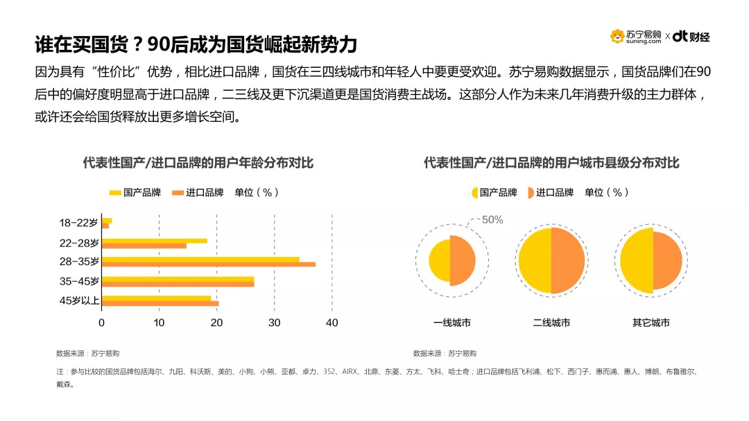 正是因为具有“性价比”优势,相比进口品牌,国货在更为务实的三四线城市和年轻人中要更受欢迎。