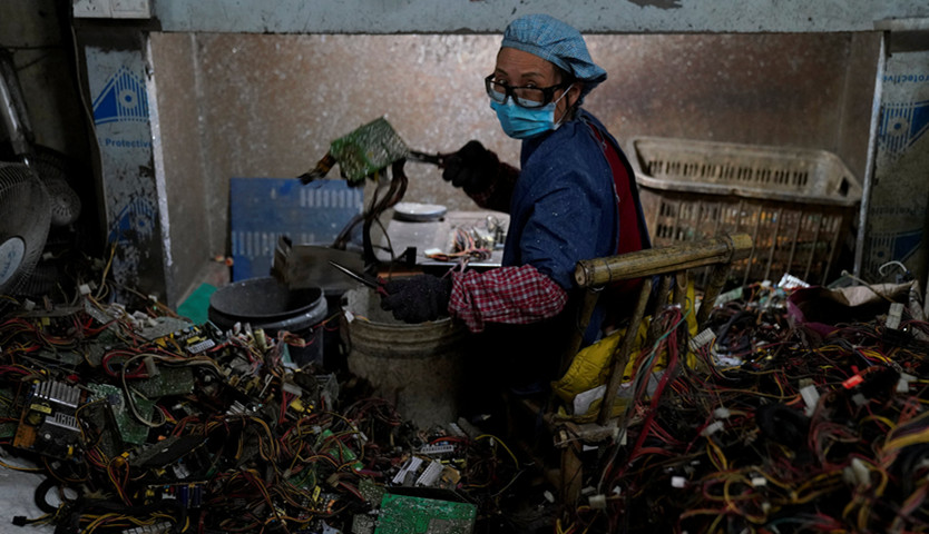 电子垃圾成分复杂,富含铜、锌、铅、汞、铬、镉等多种重金属,以及各种塑料、调色剂、表面涂层等。由于电子垃圾的不恰当处理处置,其所含有的重金属和持久性有机污染物等大量进入环境,由此诱发大量环境和社会健康问题。