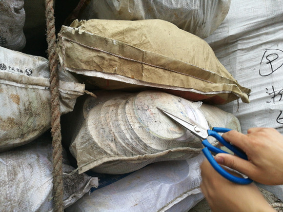 再次来到装卸场,已是上午9点30分。陈启耀依旧拿着剪刀,很多货车已经卸完货离开。“烂货!”、“垃圾中的垃圾!”陈启耀看了几批货后,嘴里不满地嘟囔着。