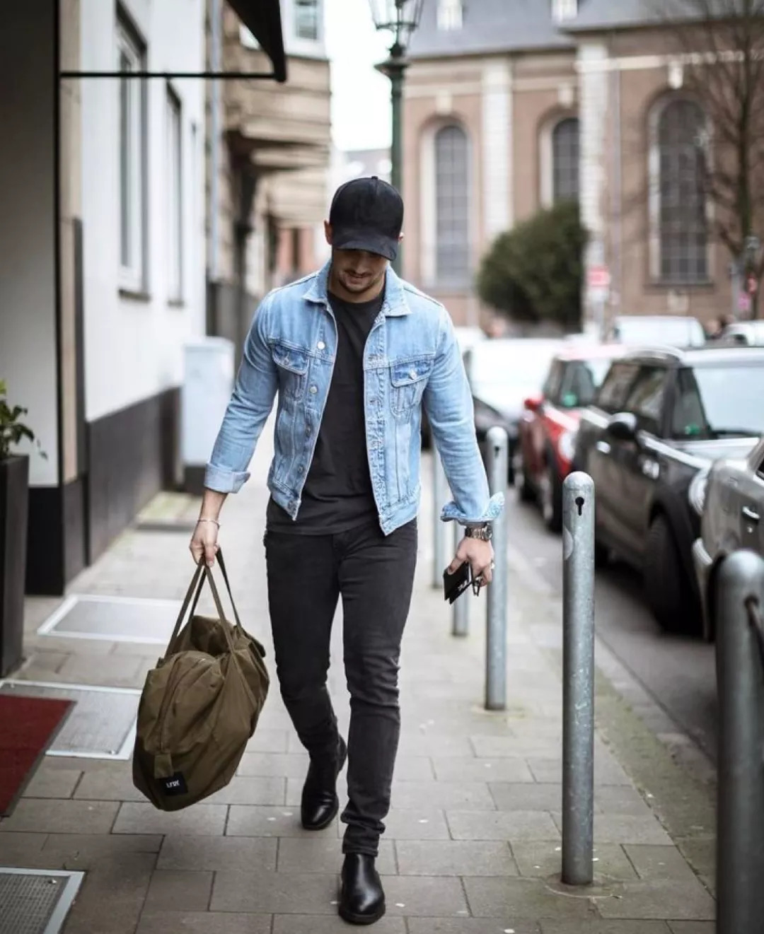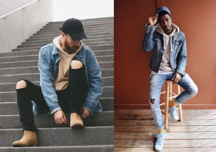 经典款的牛仔夹克相对款式比较朴素,开穿内搭帽衫增加运动感,色彩上也能缓解牛仔夹克的单调。