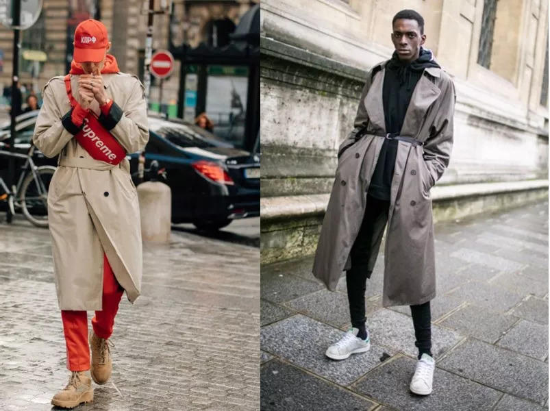 内穿帽衫和裤子同色的搭配方式,无论风衣是系扣还是开穿,整体的完整感都会更强。并弱化经典风衣给人的正式感。当然,亮色的选择能给整体带来更多的活力,更加吸睛。