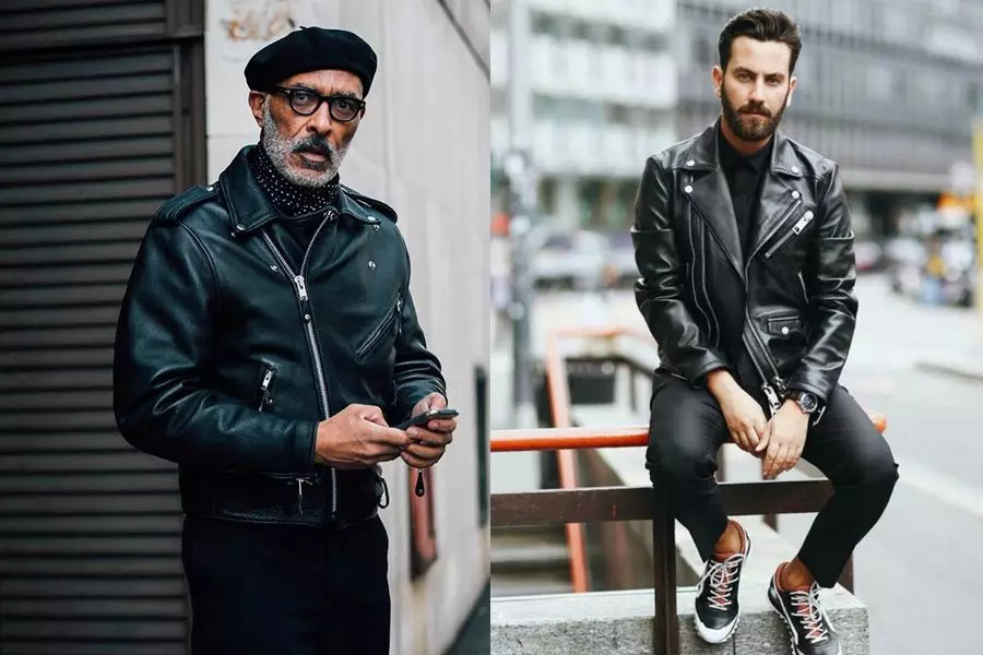 更简单的方法就是利用配饰和鞋子来控制整体风格。图案丰富的三角巾就是很好的选择,使皮夹克看起来更加柔和多元。抛弃往常的皮衣配皮靴,休闲款的运动鞋也能让机车皮夹克看起来更加轻松好穿。