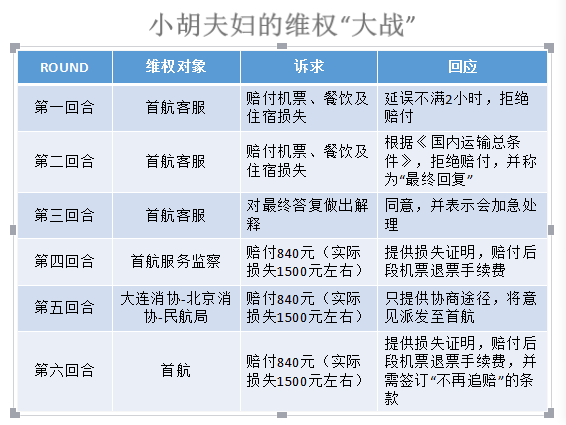 但事实还要面对,小胡夫妇只能通过携程退了票,购买了第二天回大连的机票,在济南滞留了一晚。私人安排?工作安排?不存在的。想起行程中的种种遭遇,小胡夫妇决定维权,因为如果没有前程航班的延误,这一切都不会发生。而前程航班首都航空是如何回应的?请看下面的图表。