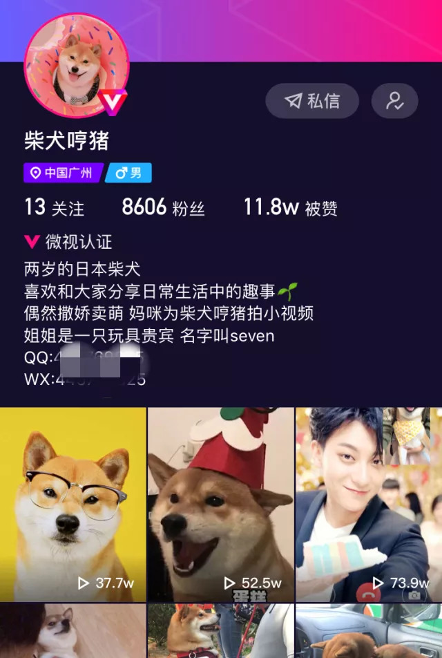 萌宠账号柴犬哼猪刚签约公会,入驻微视不到一个月,更早之前柴犬哼猪已经入驻了抖音。对比微视与抖音的不同,柴犬哼猪创始人Timmy表示,微视对像素、留边等视频要求更为严格。