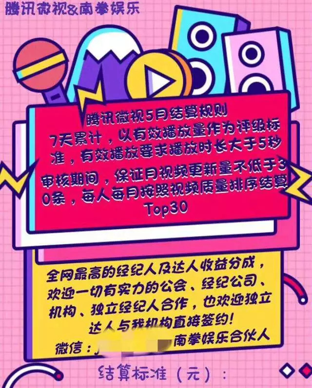 目前,聊城华媒的微视达人一部分来自校园,另一部分来自代理机构。聊城华媒要求旗下达人每月发布15-20条内容,“虽然微视要求十条内容结算,但是由于敏感词审核的问题,需要多发几条保证通过率。”