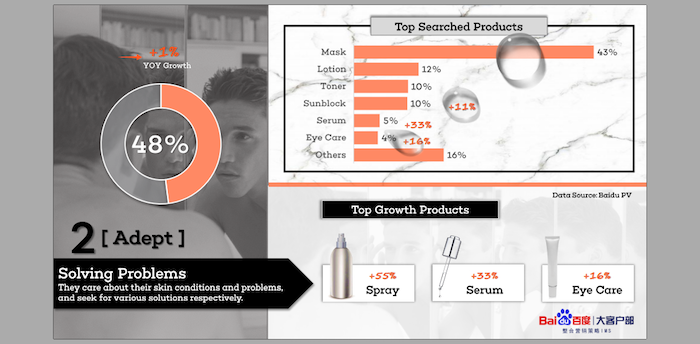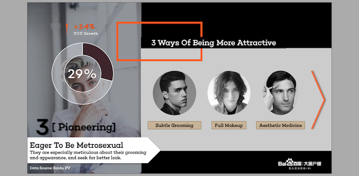 基于上述数据,百度方面总结了未来中国男士化妆品市场3大趋势: