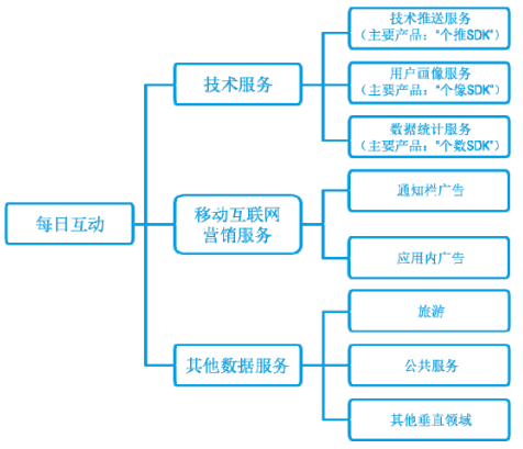 每日互动主要利用大数据能力提供面向移动应用开发者的技术服务、面向广告主的移动互联网营销服务,以及面向其他垂直领域客户的数据服务。主要客户有新浪、百度、今日头条、滴滴出行、唯品会等互联网企业。