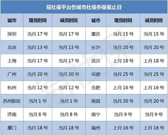 PS:社保参保截止日以每个城市社保局规定为准,单位只要在规定截止日内按时申报社保即可!