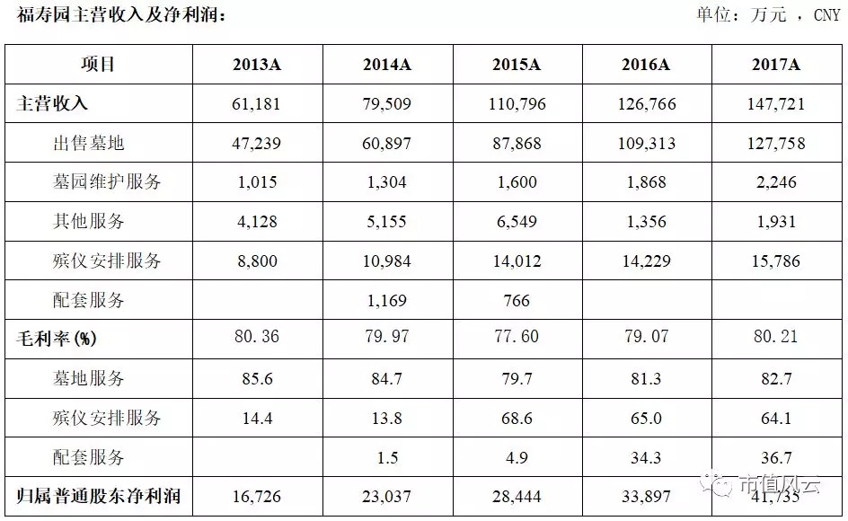 在收入构成上,出售墓地收入占营收五年平均比为27.70%,其他为殡葬服务收入。