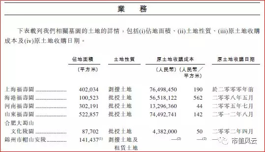 上表显示出土地成本居然不是最贵的,成本组成中最贵的是墓石成本,而2017年当年消耗的33,546平方米的土地对应的土地成本3,343万元,即平均每平方米的土地成本约为996元。不到一千元的拿地成本以10万元卖出,这就是超级凶猛高毛利的原因。