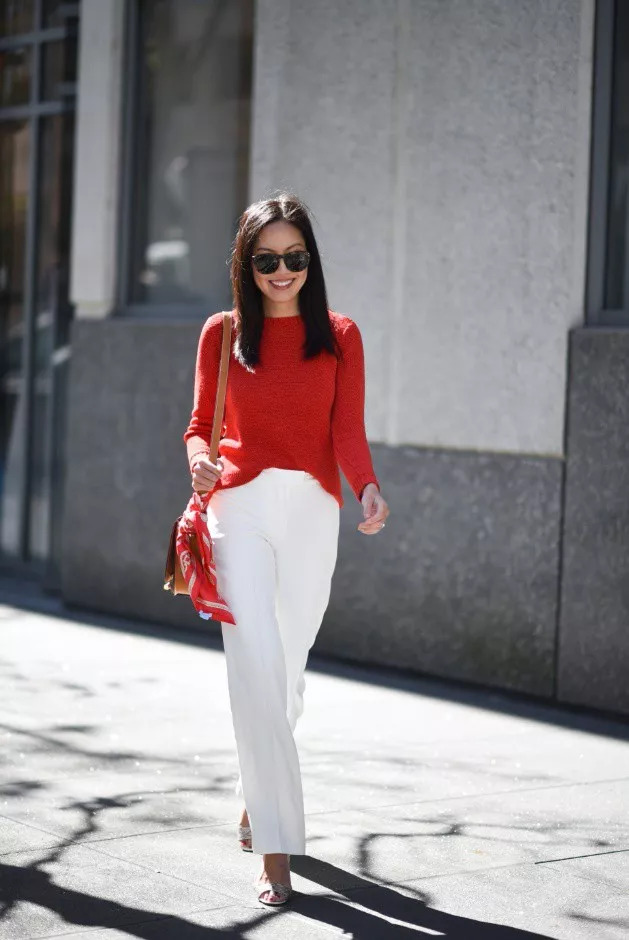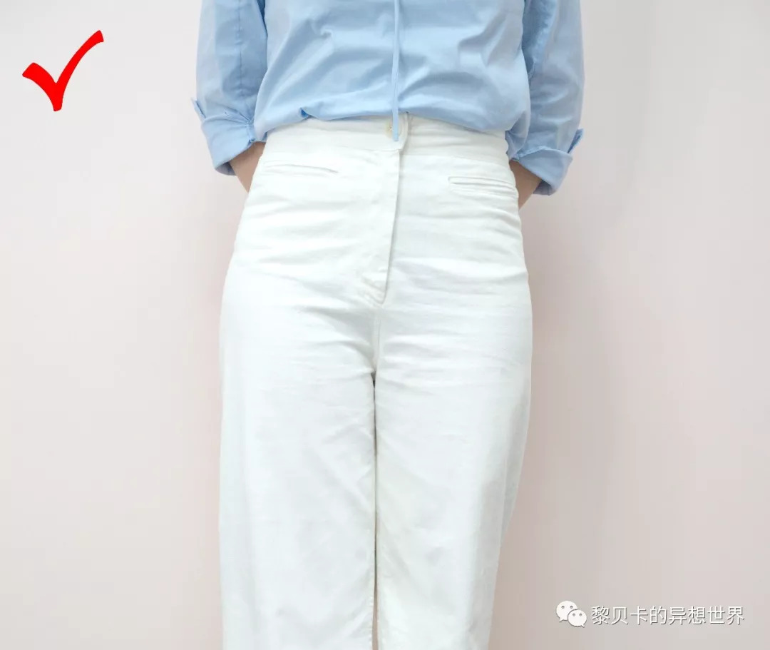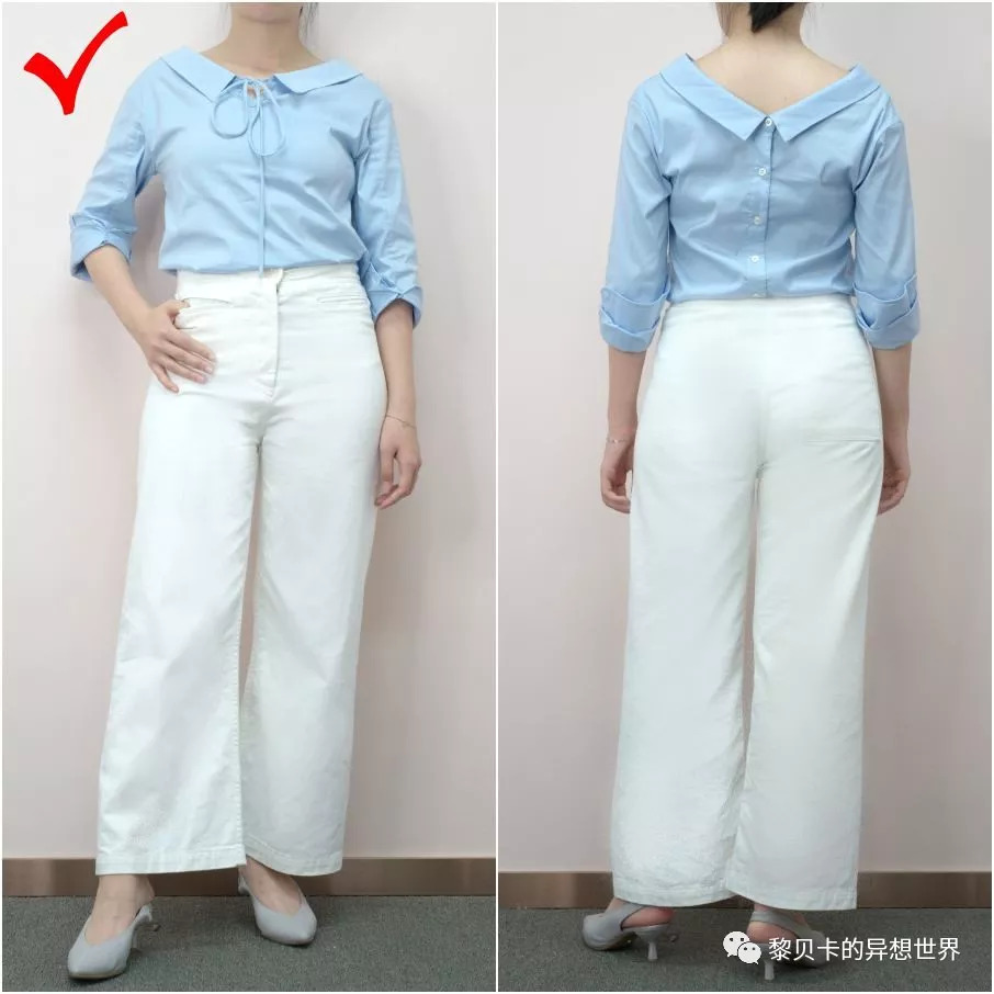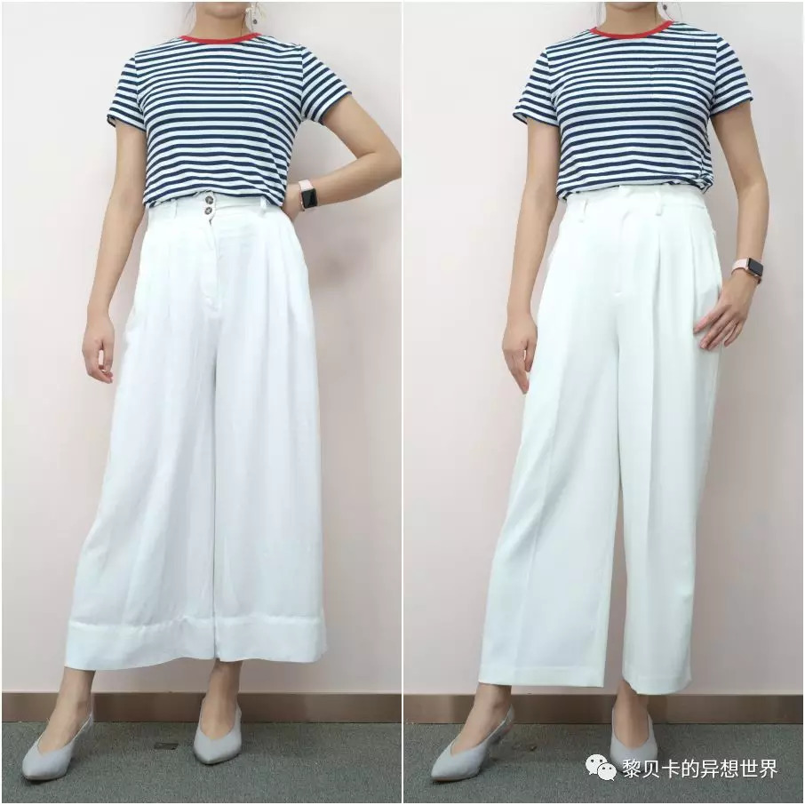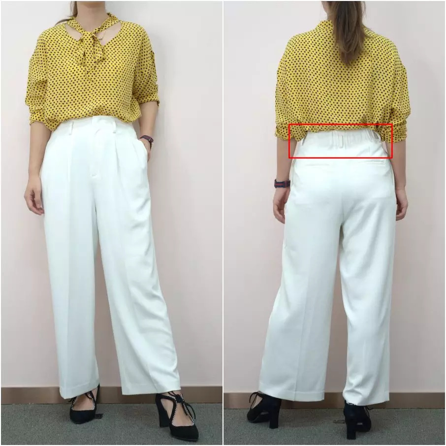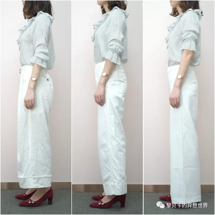 看到这里,可能有人会说,白色阔腿裤美则美矣,但我穿真的不好看啊~没错,我在办公室问了一圈,好几个助理小妞都这样说。