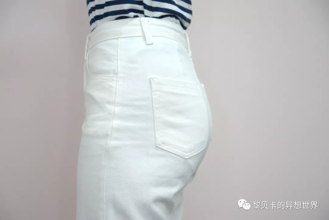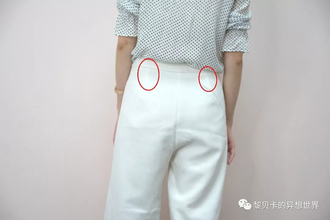 她还试穿了最左边这条亚麻材质的阔腿裤,发现最显屁股挺,最右边西装材质的是最塌的。我们发现只有最右边这条裤子没有后面的口袋,整体看起来就特别扁平。▼