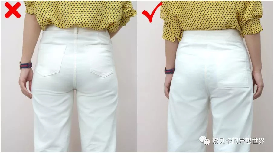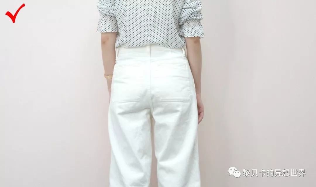 扁PP星人不挑材质,但最好是选择胯部收紧,且有后口袋的裤子。背后有褶皱设计的裤子完全不适合。