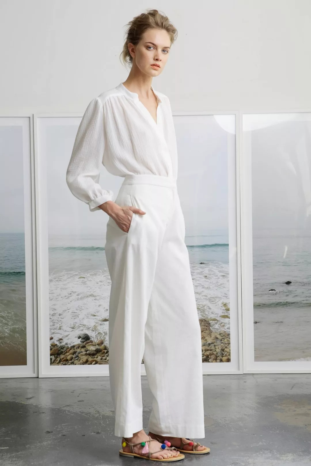 裤子显不显胖和颜色其实关系不大,和版型关系关系比较大。白裤子的版型也分很多种,有直筒裤、锥形裤、喇叭裤等等。其中最值得买的,我首推白色阔腿裤。