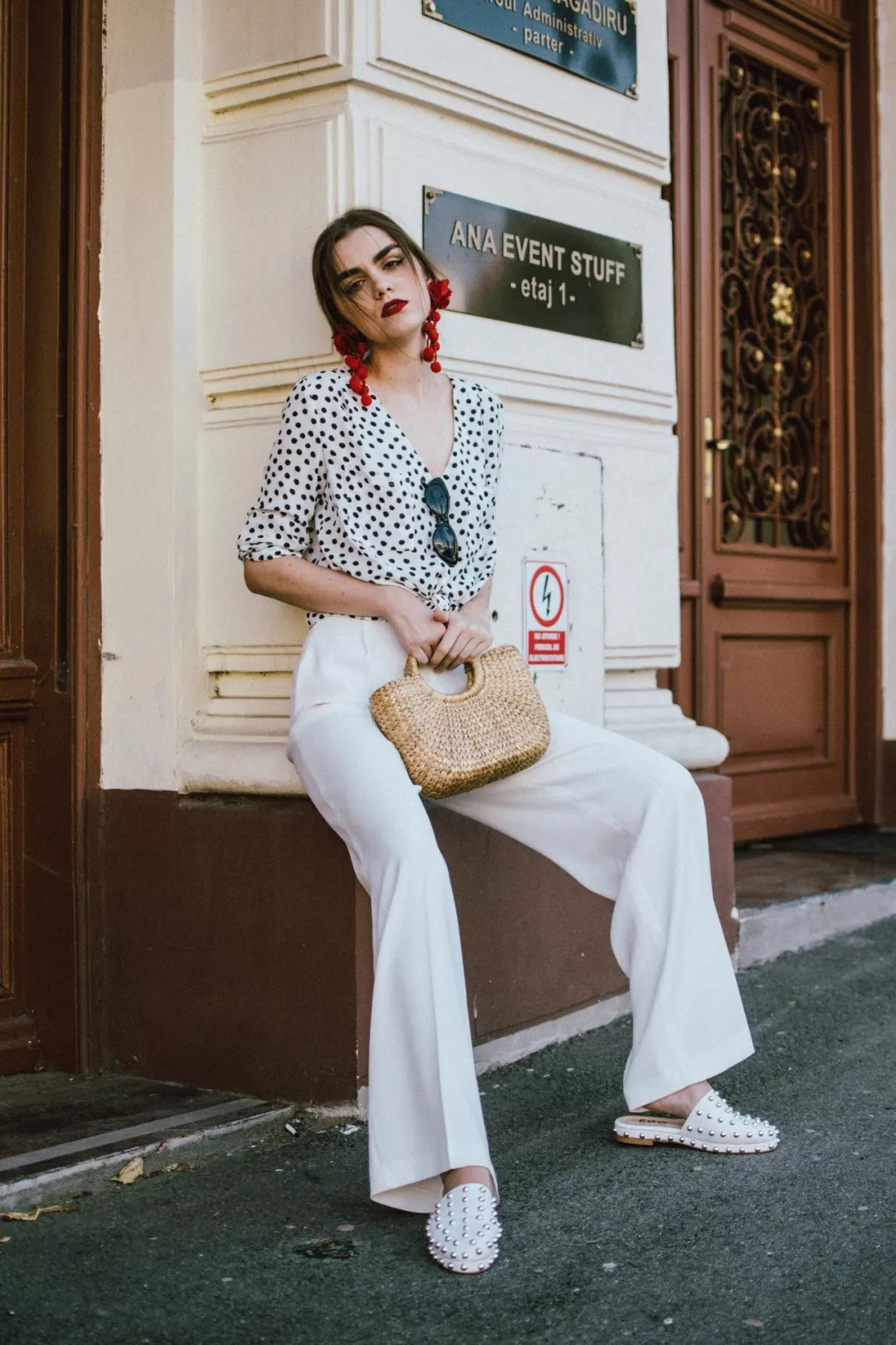 对于,今年流行的波点元素搭配白裤子也有异曲同工之妙。▼
