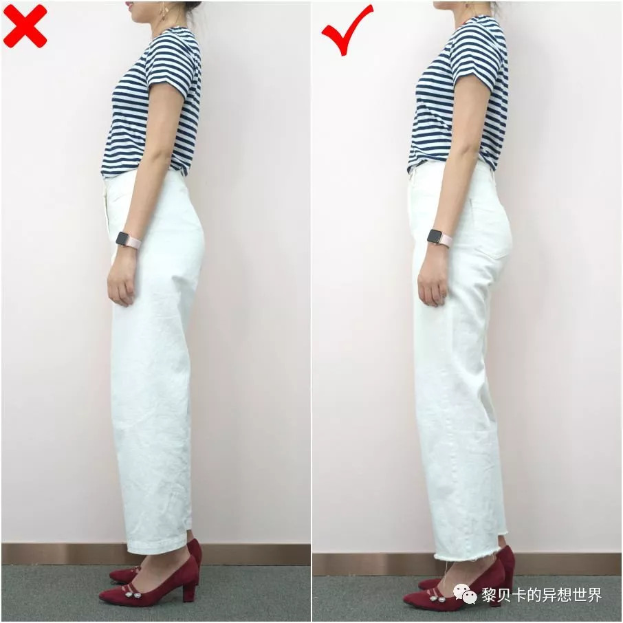 另外,Selena还给我们示范了,裤腿越长,裤管越窄,就越显高。七分的如果搭平底鞋,更容易显矮。▼