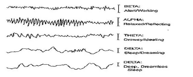 人的大脑在不同的状态下会产生四种不同的频率的脑波,α波表示最佳的学习思考状态,β波则表示人脑的紧张和疲惫,θ波表示人的精神处于深度放松和无压力的潜意识状态,而δ波则表示人正在深度睡眠。