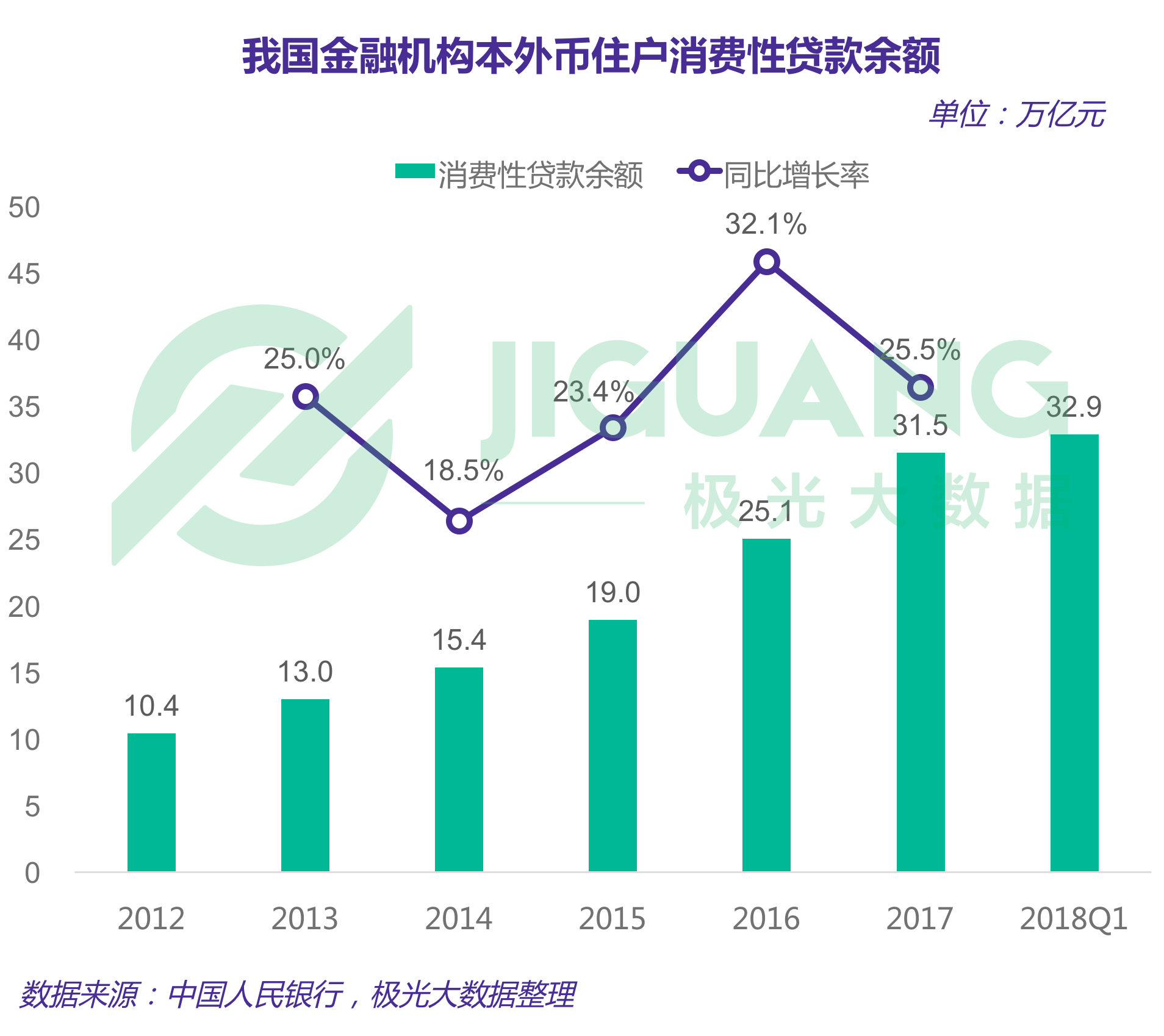 2017年消费性贷款余额相比2012年翻了两倍。我国金融机构本外币住户消费性贷款余额从2012年的10.4万亿上升至2017年的31.5万亿,截止2018年Q1消费性贷款余额达32.9万亿。