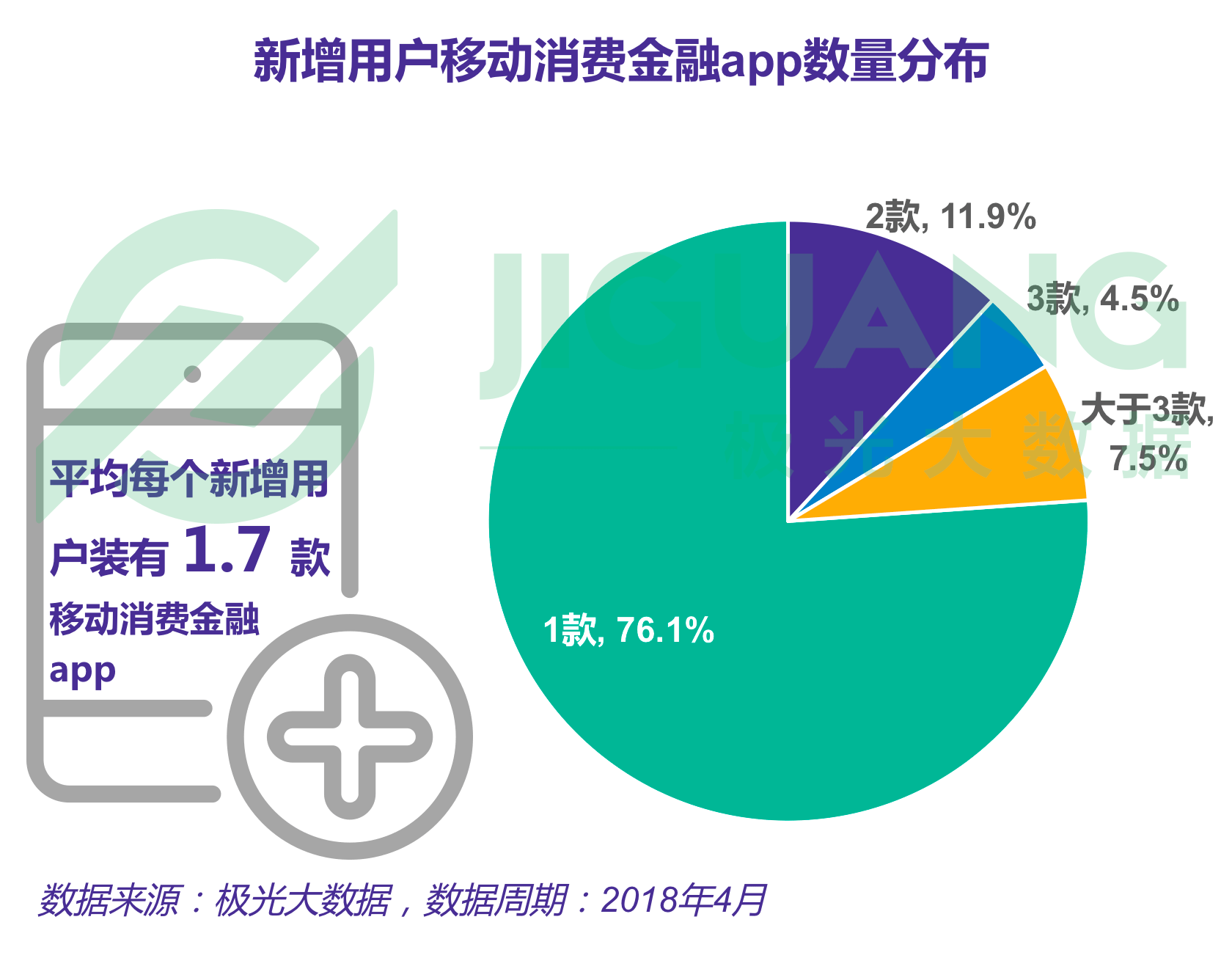 移动消费金融新增用户中,超七成仅装有1款移动消费金融app,装有2款移动消费金融app的用户占比11.9%,装有3款及以上该类app的用户占比12% 。