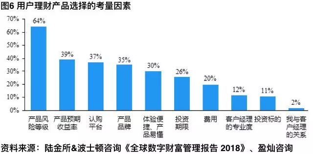 数字化财富管理的出现并未削弱投资者的风险意识,据研究数据显示,产品风险等级、收益率、认购平台、产品品牌等因素是目前投资者选择理财产品的关键考量。在操作中投资者可以通过平台安全性风险、资产风险、市场风险和法律风险等进行风险评估。