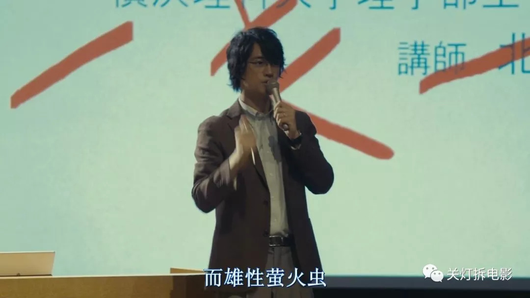 北野老师在电影中正在做水生萤火虫的研究,水生萤火虫,是萤火虫的一个种类,它们特点你仔细听一下: