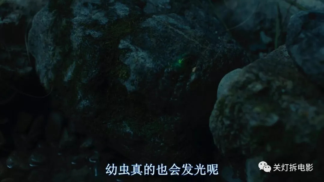 在两人正式复合前,导演放了一个空镜头,黑夜的溪流中,两只散发迷人绿光的萤火虫安然度过了水生幼虫阶段,飞向了充满未知与危险的夜空。
