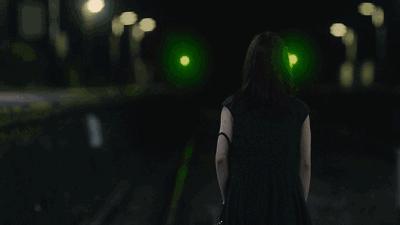 昼颜妻躺在铁轨上,模糊的视线看出去,远处的两盏交通灯一闪一闪,发出诡异的绿色光芒。