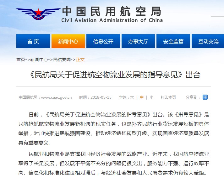 《意见》指出,着力优化航空资源配置,全面提高航空物流信息化水平。