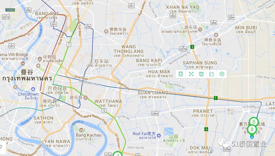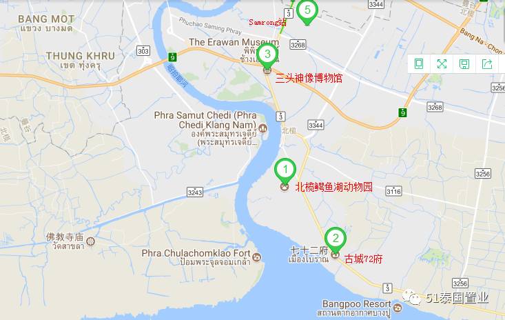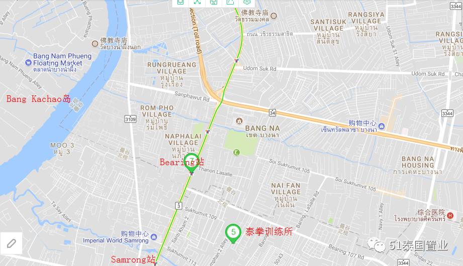 素坤逸线Bearing站穿过北榄府,它原是素坤逸线最后一站,但如今起到承上启下的作用,更像是曼谷与北榄府的中间站。打开谷歌地图,可以看见,该站及沿线附近,配套齐全,购物中心、医院、高尔夫球场、餐厅等;开车十几分钟便可到达“曼谷城市绿肺”Bang Krachao岛,是放松身心、休闲娱乐的好去处。而这些也构成了曼谷市区之外的都市生活圈,居住价值进一步提升。