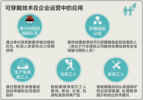 但其实可穿戴技术在企业运营中的应用,远比直接向消费者提供服务更有价值。全球知名会计师事务所德勤在最新发布的报告《技术趋势2014》中建议企业尽早着手,将可穿戴设备融入企业生态系统,改善工作流程。
