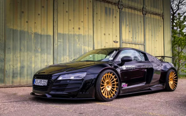 奥迪R8是一款中置引擎的双座跑车,于2006年推出,基于兰博基尼Gallardo的平台打造,融合了奥迪多年的赛事经验。4.2升的V8发动机、全时四驱系统以及全铝车身使其不管在赛道还是公路上都表现卓越。