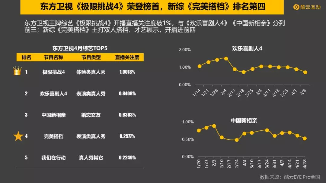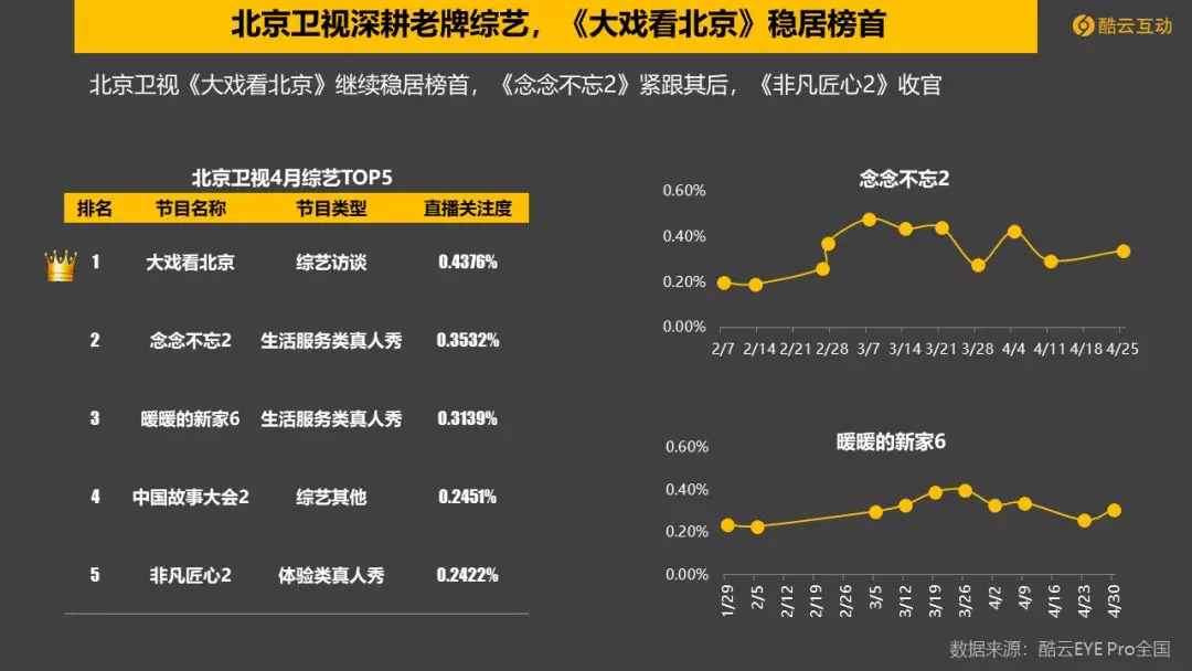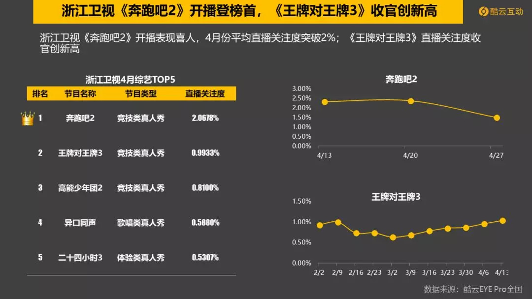 4. 浙江卫视《奔跑吧2》开播,直播关注度破2%。