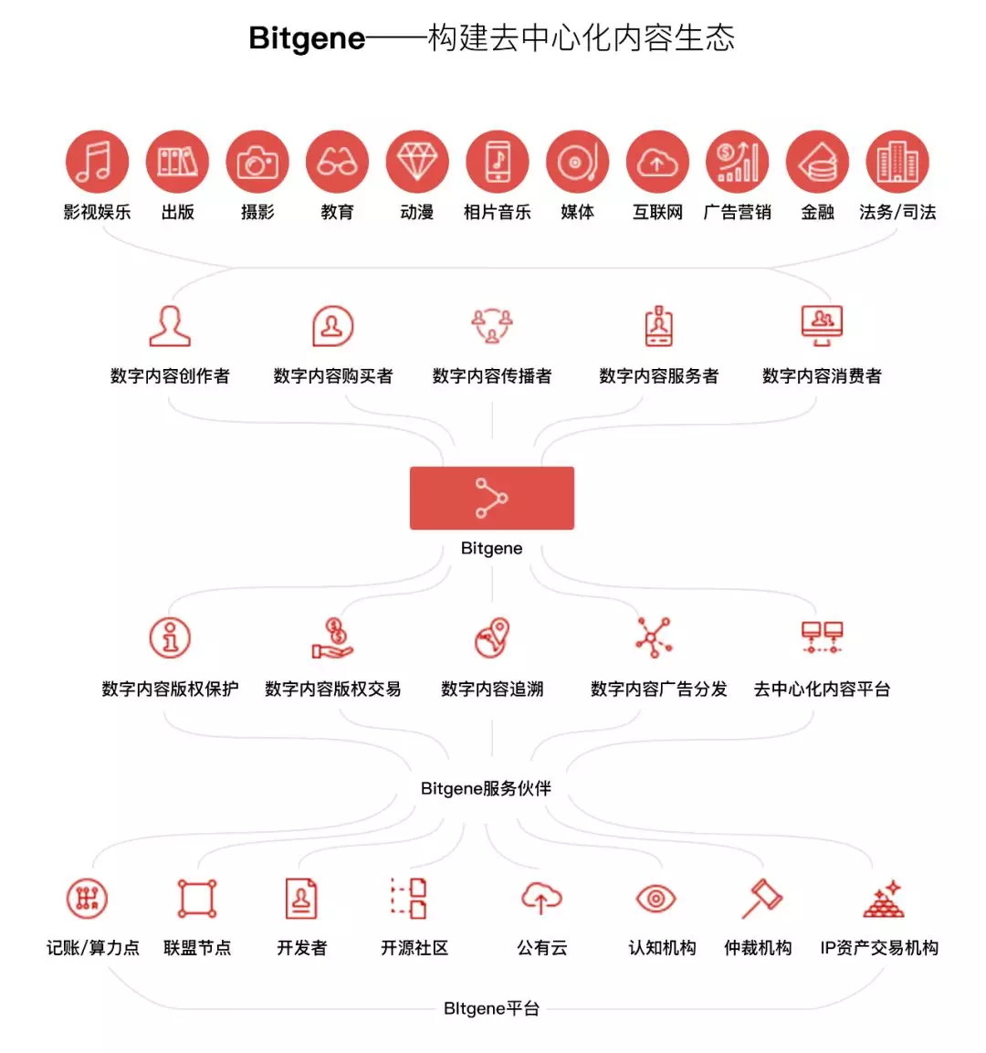 江湖今天推送的是关于“区块链+落地场景”的另一个热门领域——数字内容版权保护。选取样本为近期在区块链创投圈十分活跃的Bitgene。这支团队希望通过区块链技术建立起图片、影像等内容产品的“数字基因”,从而实现数字内容版权的“全链”保护。
