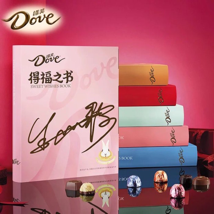 作为高冲动性的消费品,糖巧品类在电商上没有太多优势,这促使玛氏开始思考如何像线下一样,在线上为消费者创造更多品牌触点。基于天猫数据,玛氏发现76%的消费者有将巧克力作为礼物的消费意向,而80%的消费者对定制化礼物有积极态度。基于这个洞察,德芙在2018年新年期间与天猫新品创新中心合作推出了C2B定制产品“得福之书”,产品包含一本得福之书以及一盒可定制口味的巧克力。