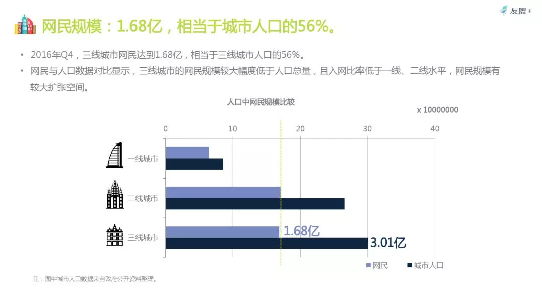 诚然,一线城市人群对于互联网产品的需求更高,对于新事物的捕捉和接受也更快,但是这不意味着其他城市就没有所对应的流量。实际上,在少量一线发达城市之外,能够被挖掘的用户基数反而更大,那是一个将近五六亿人口的大市场,按数量来看这仿佛才是“主流人群”。所以,想在巨头林立的夹缝中生存下来,最重要的策略在于反其道而行,下沉到三四五线城市甚至乡镇农村市场,触及习惯迥异、还没忠诚于已有产品的群体,并借助资本的力量快速地“收割”,最终打出漂亮的“农村包围城市”之战。