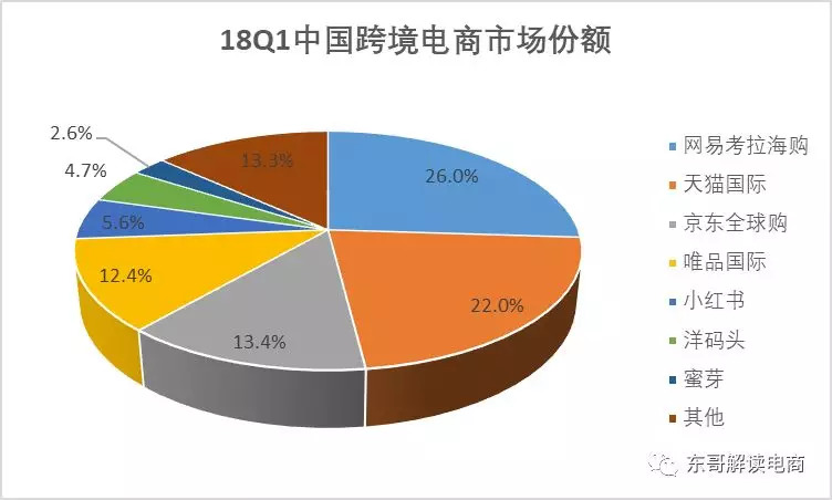 此前,艾媒咨询发布的《2018Q1中国跨境电商季度监测报告》显示,网易考拉在2018年1季度的市场份额为26%,力压天猫国际(22%)和京东全球购(13.4%)蝉联榜首。这一市场份额高于2017年的25.8%和2016年的21.6%。