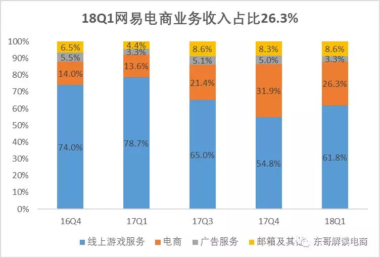 18Q1,网易电商业务实现收入37.3亿元,较去年同期增长101%。网易虽然没有分别公布严选和考拉的收入,但在分析师电话会议中,CFO杨昭烜表示,该板块的主要贡献来自考拉。