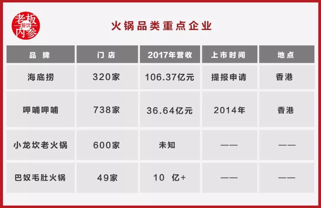 对于餐饮企业来说,身处大赛道、容易标准化、盈利模式好的火锅品类,显然更有IPO的优势。