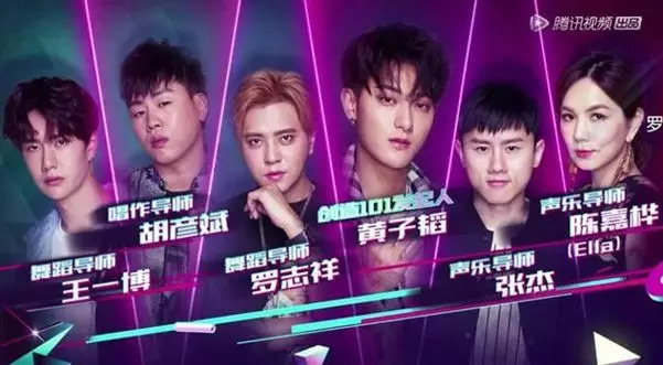 《创造101》则由曾和张艺兴在同一个男团出道的黄子韬发起,Ella、张杰、胡彦斌、罗志祥和王一博加盟导师团队。而黄子韬还是腾讯微视第一个代言人,前不久和罗志祥一同参加了另一档热门综艺《这就是街舞》,作为《创造101》的发起人,可谓是再合适不过了。