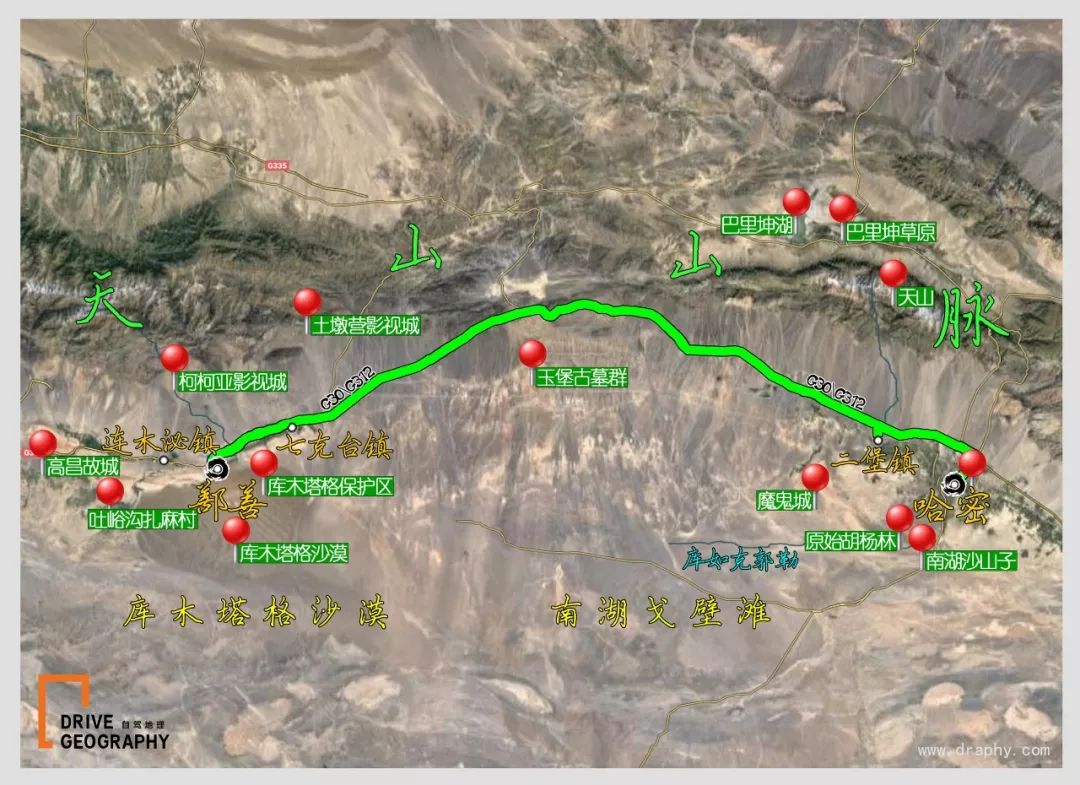 哈密市55km二堡镇 250km七克台镇 36km鄯善