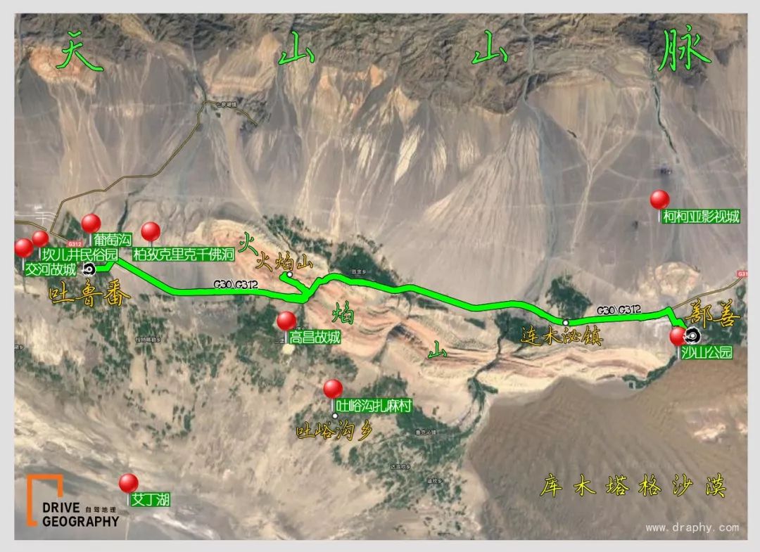 鄯善25km连木沁镇 55km火焰山 40km吐鲁番