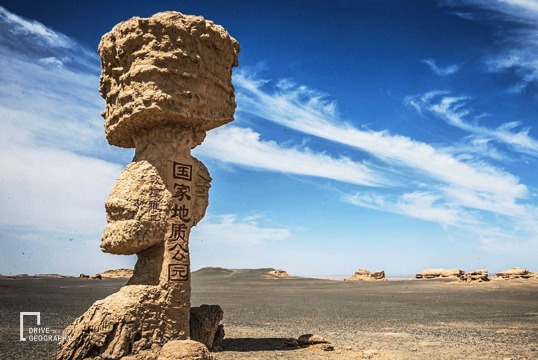 雅丹地貌是一种典型的风蚀地貌(可想象塞外风力之大~),这里以前叫雅丹龙城、敦煌魔鬼城……现在叫敦煌雅丹国家地质公园,大门口的雅丹蘑菇石模拟塑像,可是“到此一游”照片的经典背景。